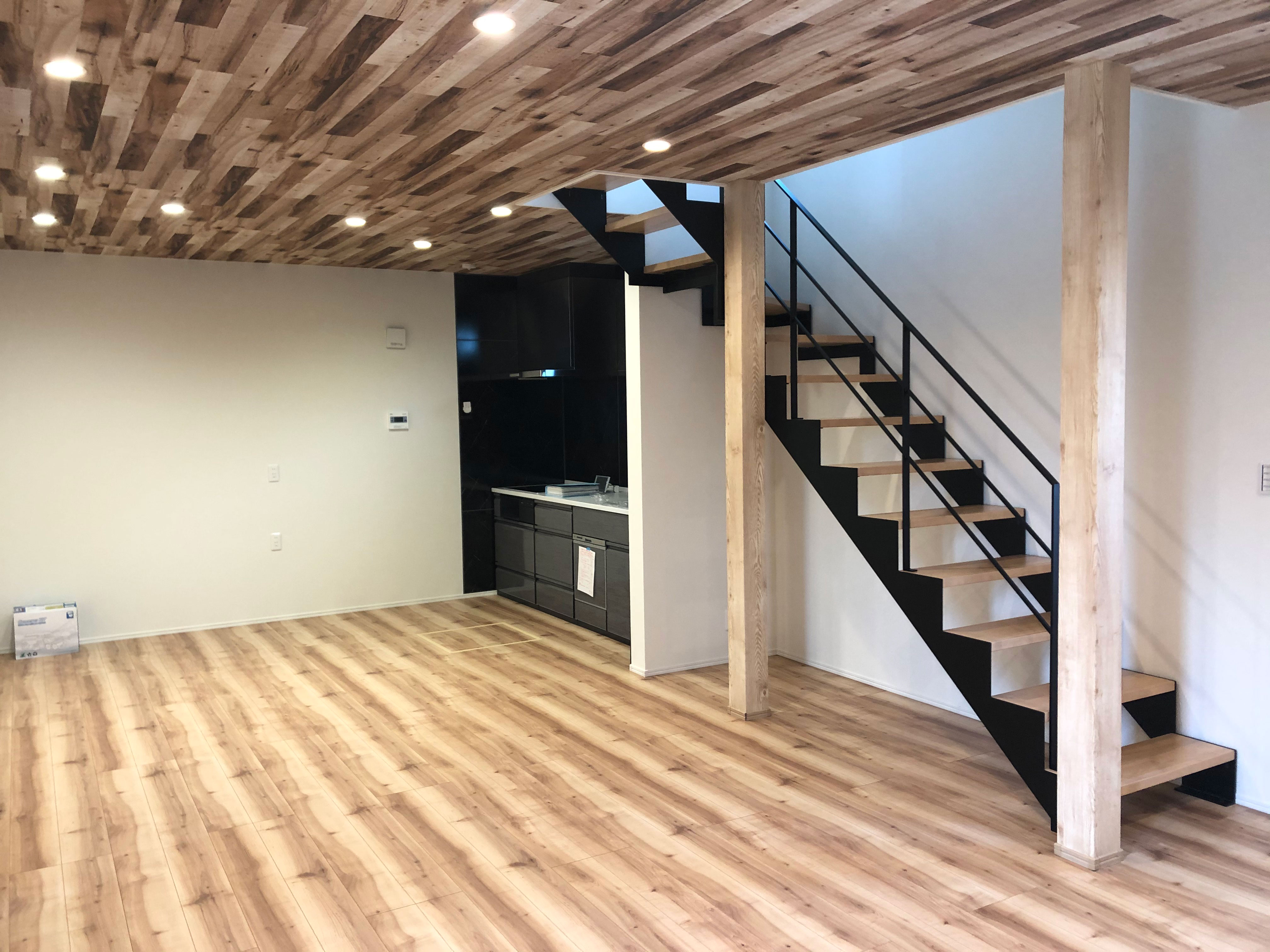 > ウッド調に合わせたデザイン階段